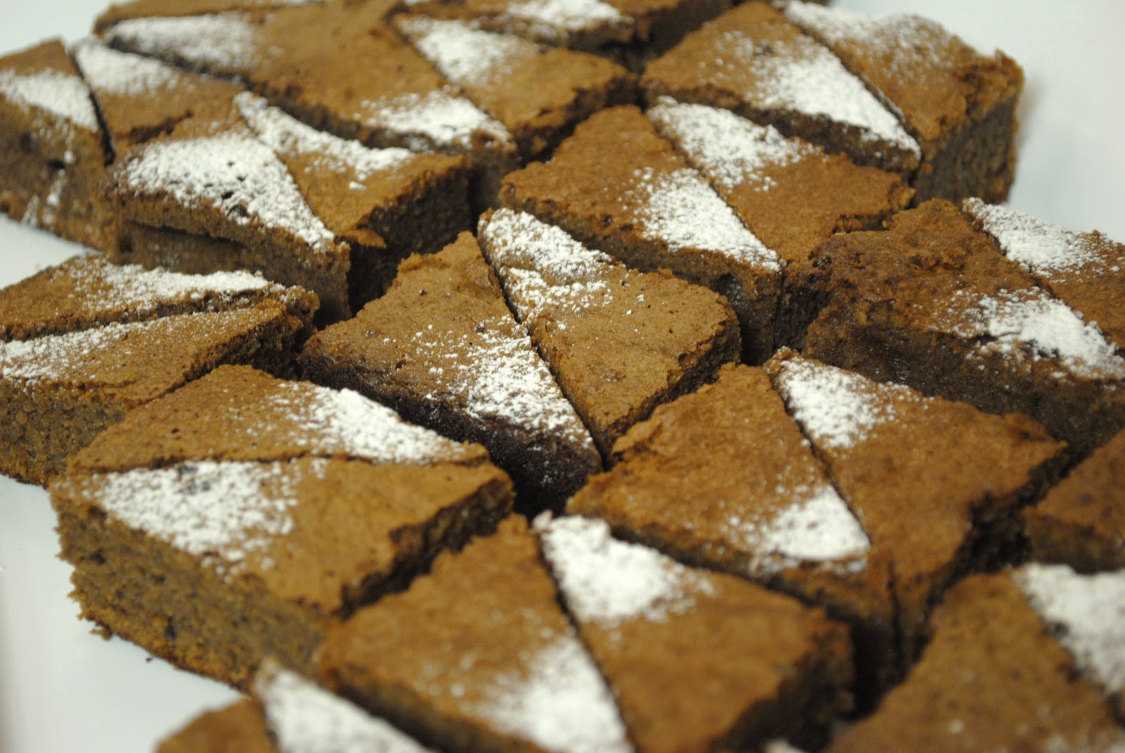 3. Add powdered sugar on each corner of the brownies.